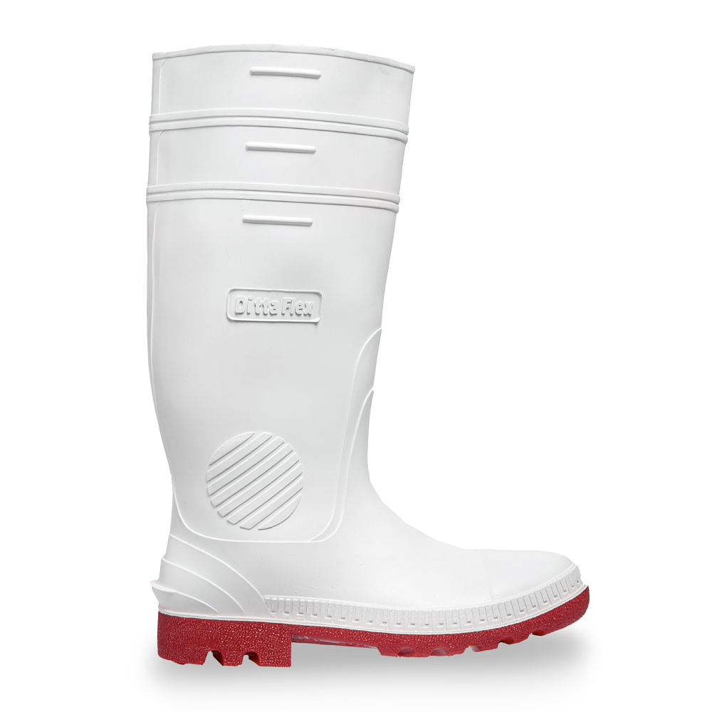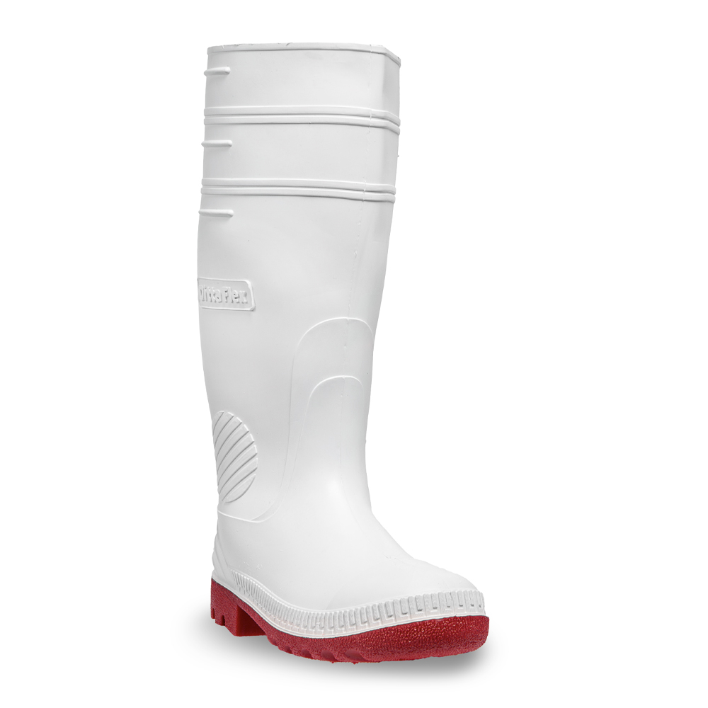 Bota sanitaria industrial fabricada en PVC virgen mediante inyección, diseñada para uso rudo y alta resistencia. Ofrece protección contra hidrocarburos, grasa, aceites, sangre, fertilizantes, detergentes, agentes químicos, ácidos, solventes diluidos, herbicidas, agua, fango y lodo. Resistente a cambios de temperatura desde -20°C hasta 70°C. Ideal como bota sanitaria de seguridad industrial reforzada para empacadoras, procesadoras de lácteos y embutidos, pesqueras, laboratorios, farmacéuticas, hospitales y otros procesos alimenticios y sanitarios.