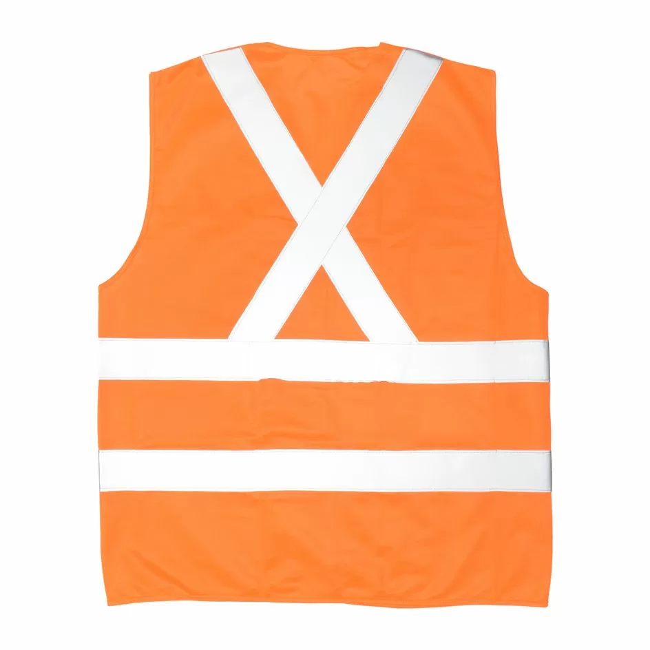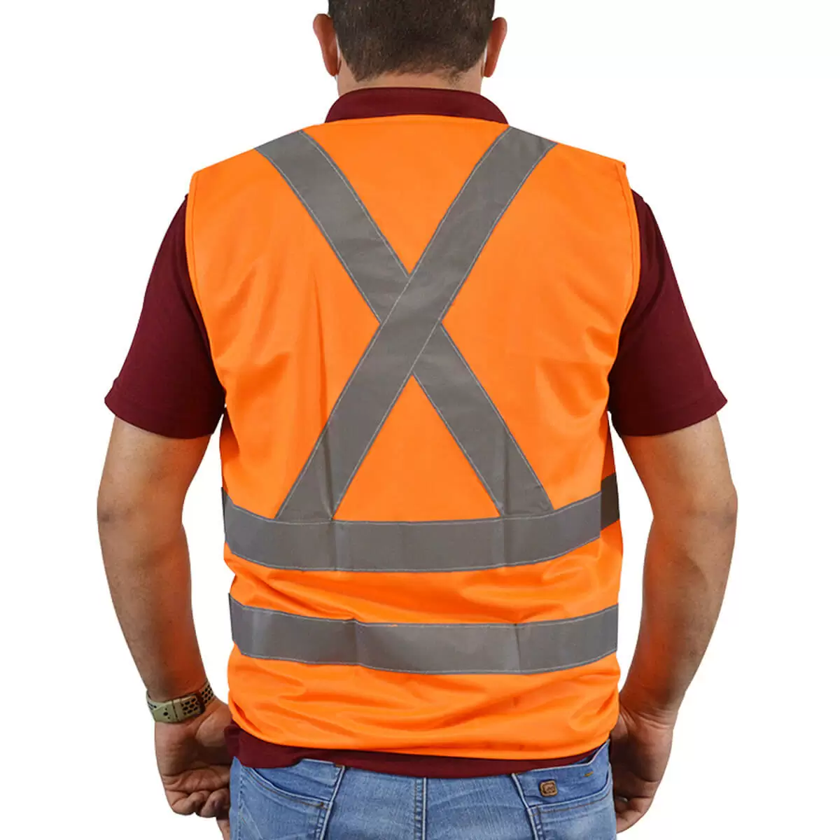 Este chaleco presenta un bies con acabado en hilo de alta visibilidad del mismo color de la prenda. Incorpora líneas reflejantes de 2” en la parte frontal y trasera, y un sistema de cierre versátil con cinta de velcro y/o cremallera. Su composición textil es 100% poliéster de alta visibilidad.