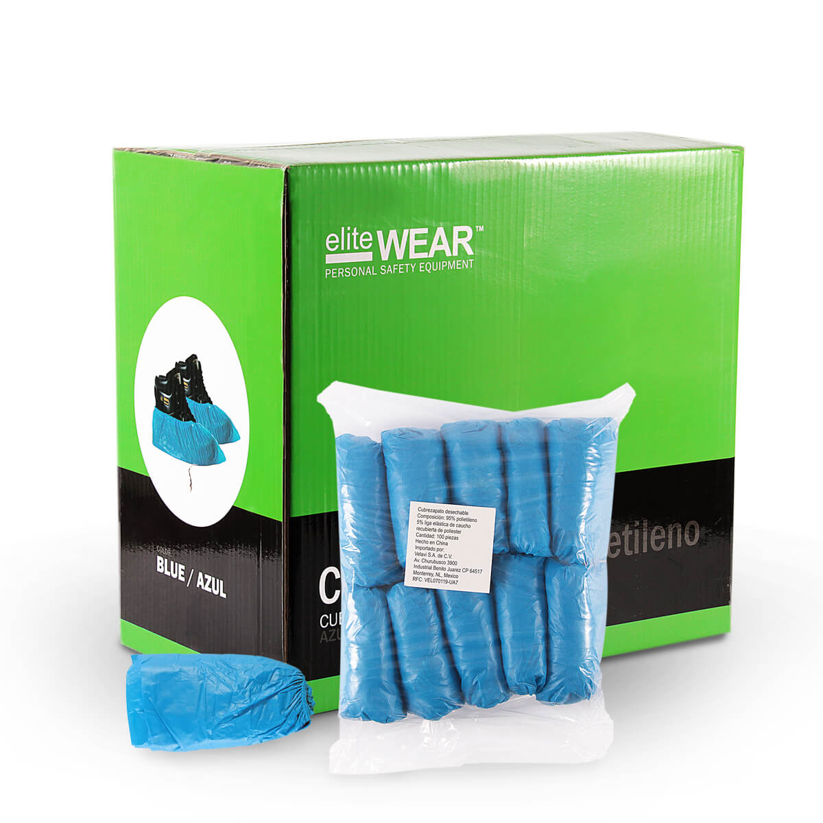 El cubrezapato desechable de polietileno azul está fabricado con 100% CPE (polietileno clorado termoplástico), un material resistente a la abrasión y repelente a fluidos. Diseñado para ofrecer una protección efectiva en diversos entornos, su formato desechable facilita su uso y garantiza higiene.
