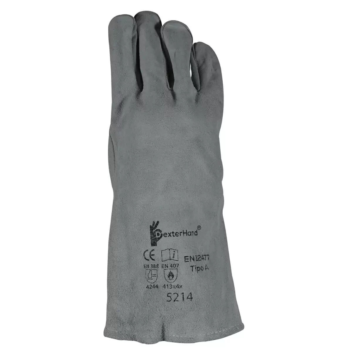 El guante Dexterhand 5214 está diseñado para proteger al usuario en trabajos de soldadura o tareas industriales con exposición a calor y desgaste moderado.