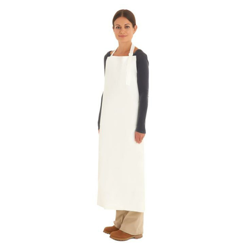 Con alta resistencia al desgarre y la tracción, este mandil cuenta con una elasticidad de hasta 515%, manteniendo su integridad estructural incluso bajo uso exigente. Su superficie es soldable, termoformable y ofrece una buena adhesión a la tela. Presenta además una estabilidad hidrolítica aceptable, lo que lo hace ideal en entornos húmedos o con exposición constante a líquidos.